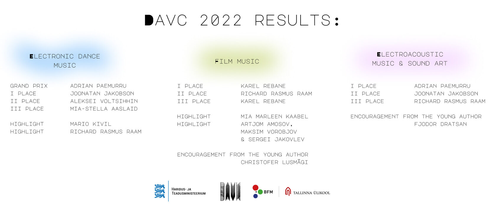 Jury members: TLU BFM - Gerhard Lock (lecturer, composer), Avo Ulvik (lecturer, musician), Taavi Tuisk (lecturer, musician), Dr. Marit Mõistlik-Tamm (lecturer, musician, leader of evaluation and jury work), Tiina Selke (associate professor , pedagogue, musician, competition initiator and long-time leader), Hain Hõlpus (lecturer, musician);